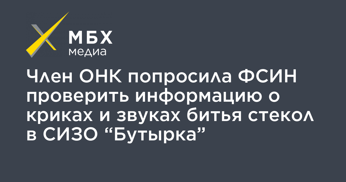 Член Общественной наблюдательной комиссии (ОНК) Москвы Марина Литвинович обратилась во ФСИН с просьбой объяснить информацию о криках и звуках битья стекол, которые доносятся из СИЗО «Бутырка». Об этом Литвинович сообщила «МБХ медиа».