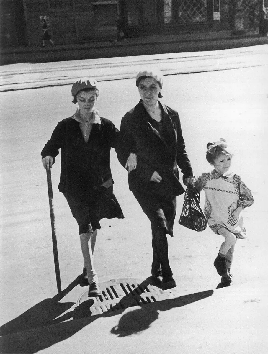 Один из самых знаменитых блокадных снимков сделал фотокор ЛенТАСС Василий Федосеев. В кадре нет убитых и раненых, просто переходят дорогу женщина и две истощенные девочки. Старшей 13 лет, она опирается на палку, младшая, 4-летняя, как будто вприпрыжку бежит на тонких ножках. Лица у обеих очень взрослые. Их имена известны: это семья Опаховых — Вероника Александровна, Лора и Долорес. У снимка есть своя история, ее рассказали в «Блокадной книге» Алесь Адамович и Даниил Гранин. «Это были не ноги, а косточки, обтянутые кожей, — говорит Вероника Опахова. — Я иногда и сейчас еще смотрю на свои ноги: у меня под коленками появляются какие-то коричнево-зеленые пятна. Это под кожей, видимо, остатки цинготной болезни…» Долорес на том снимке действительно пыталась прыгнуть, но не очень получалось. «Ее колено вот такое было: оно было все распухшее, налитое водой, — объясняет ее мама. — Ей четыре года. Что вы хотите? Солнышко греет, она с мамой идет, мама обещает: вот погуляем, придем домой, сходим в столовую, возьмем по карточке обед, придем домой и будем кушать. А ведь слово «кушать» — это было, знаете, магическое слово в то время».