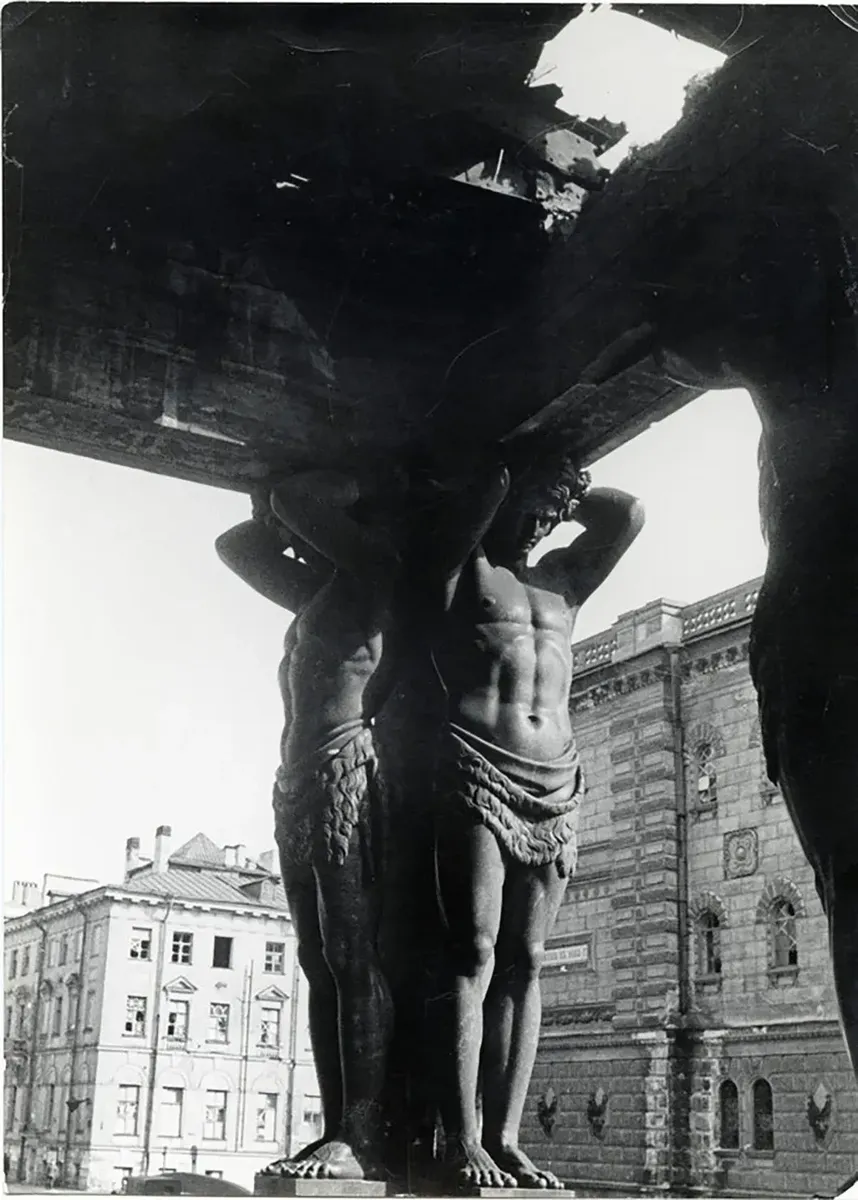 Однако обычно фоторепортеры старались по одному в город не выходить. К тому же редакционные задания часто совпадали. И есть много сюжетов, снятых разными мастерами по-разному. Один из них, например, — портик Нового Эрмитажа, пострадавший от обстрелов. «Классическим» считается кадр, сделанный Борисом Кудояровым: ему удалось так поймать ракурс, что, глядя на фото, мы чувствуем, как вдруг тяжело стало атлантам.