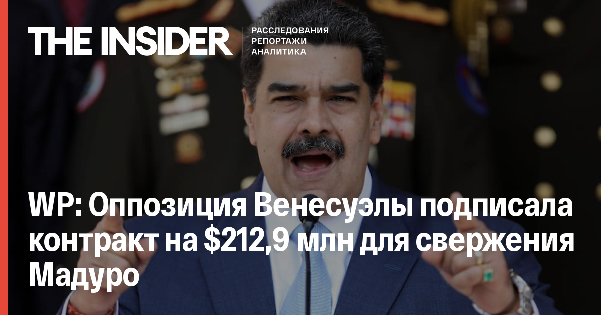 Оппозиция Венесуэлы заключила контракт с американской частной военной компанией Silvercorp на свержение президента Николаса Мадуро. Об этом пишет The Washington Post со ссылкой на документ, который газете предоставила сама оппозиция при условии удаления одного из приложений. Стоимость услуг составила $212,9 млн.