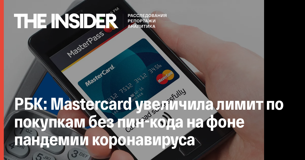 РБК: Mastercard увеличила лимит по покупкам без пин-кода на фоне пандемии коронавируса