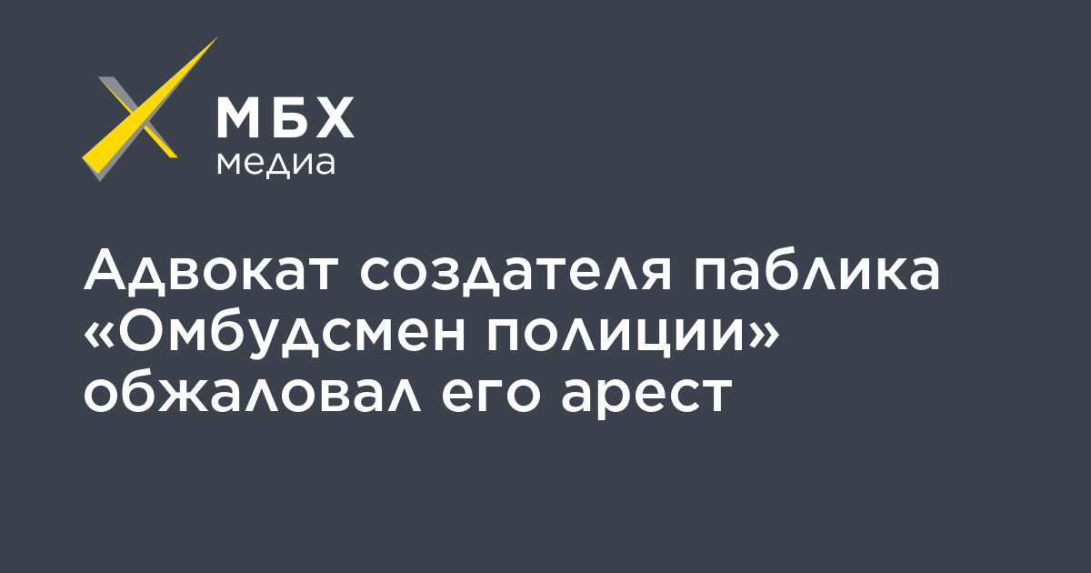 Адвокат создателя паблика «Омбудсмен полиции» обжаловал его арест