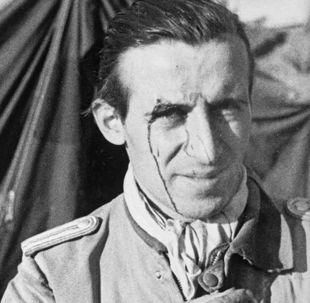 Обернувшись назад, через плечо, смотрит на нас с одной из его фотографий осени 1942 года безымянный немецкий летчик-пикировщик из узкой кабины своего самолета. Он как будто зажат в мутном стеклянном туннеле, ведущем в неизвестность ближайшего вылета, в близкое будущее войны — в углах его губ читается едва заметная улыбка, а глаза в тусклом полусвете сияют бешено. Он демон, он человек, который превратился в демона в своей тесной, узкой, летающей, с воем падающей в пике и убивающей жизнь машине.