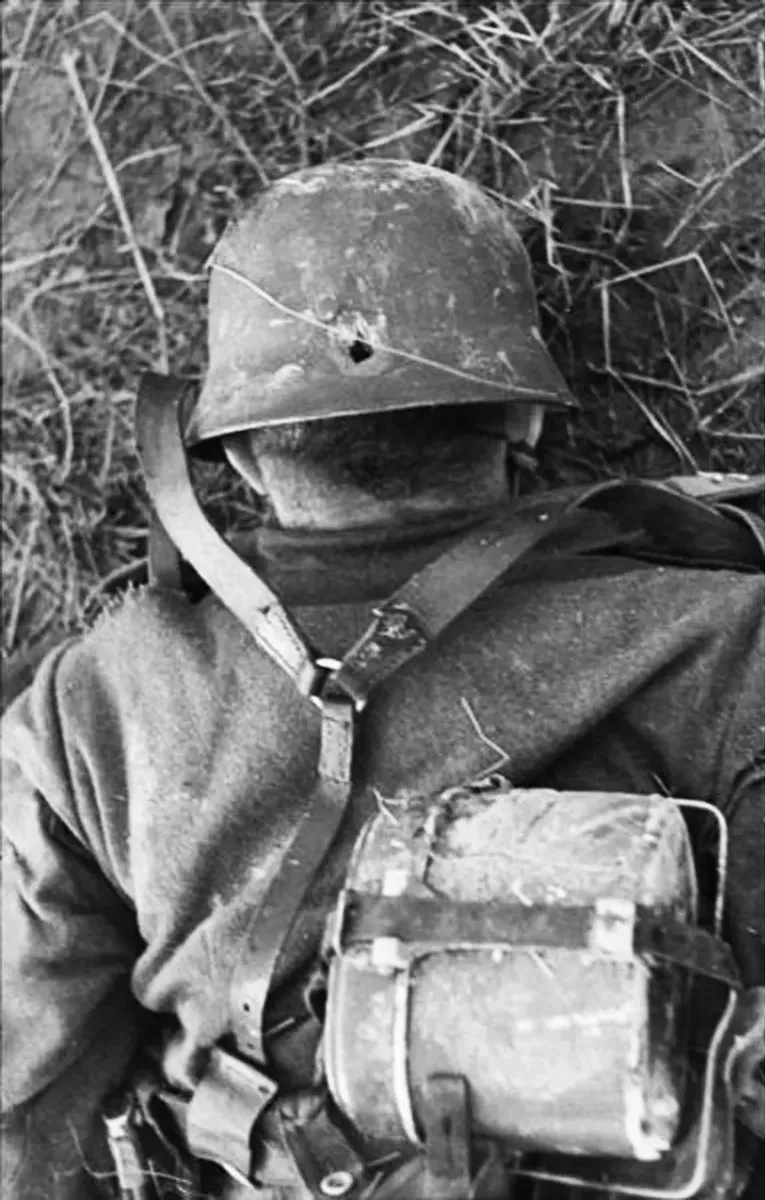 Солдат в пробитой каске, убитый снайпером в затылок. Символ войны — места обезличенной смерти