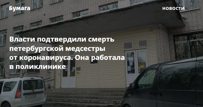 В понедельник, 11 мая, комиссия по анализу летальных исходов подтвердила смерть еще одной петербургской медсестры от COVID-19. Она работала в одной из городских поликлиник, рассказали «Бумаге» в пресс-службе комитета по здравоохранению.
