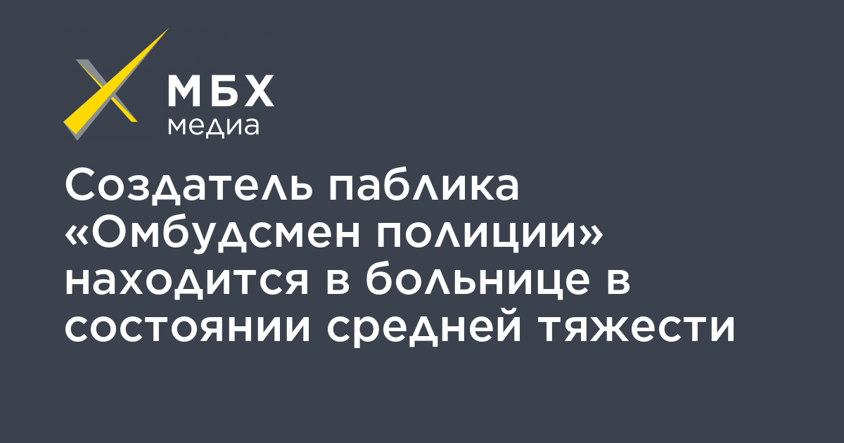 Создатель паблика «Омбудсмен полиции» находится в больнице в состоянии средней тяжести