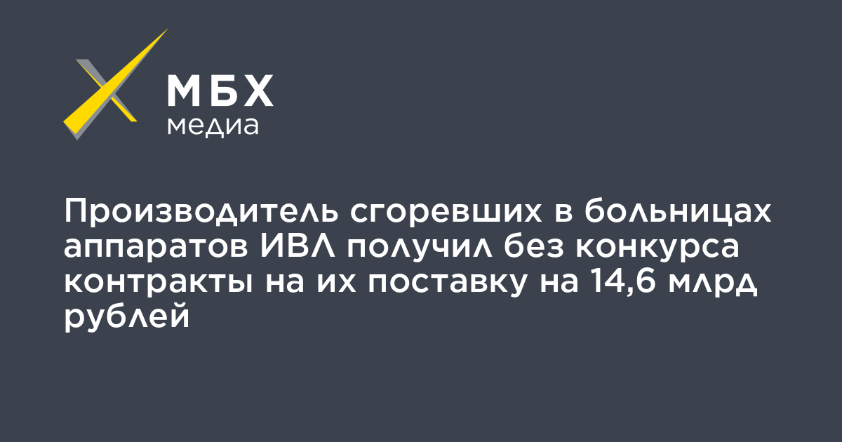 АО «Концерн радиоэлектронные технологии» (КРЭТ), который является производителем сгоревших в больницах аппаратов ИВЛ, получил без конкурса контракты на их поставку на 14,6 млрд рублей, подсчитало «МБХ медиа» на основании данных госзакупок.