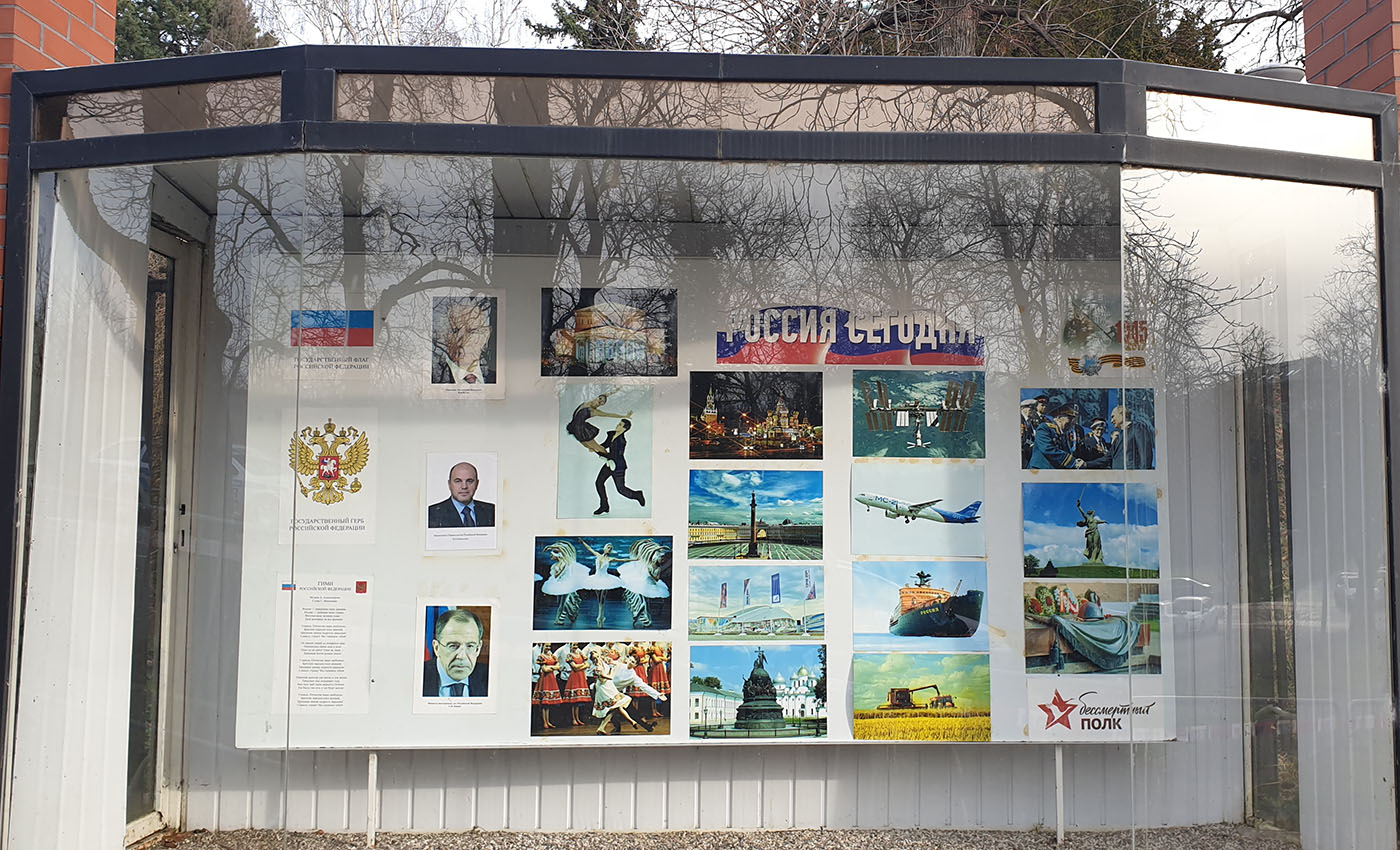 Такая же табличка, но уже открытая, красовалась на столбе у главного входа в посольство России в Чешской республике. На красном фоне — стандартном для оформления уличных указателей в Праге — белым шрифтом наложили надпись .
