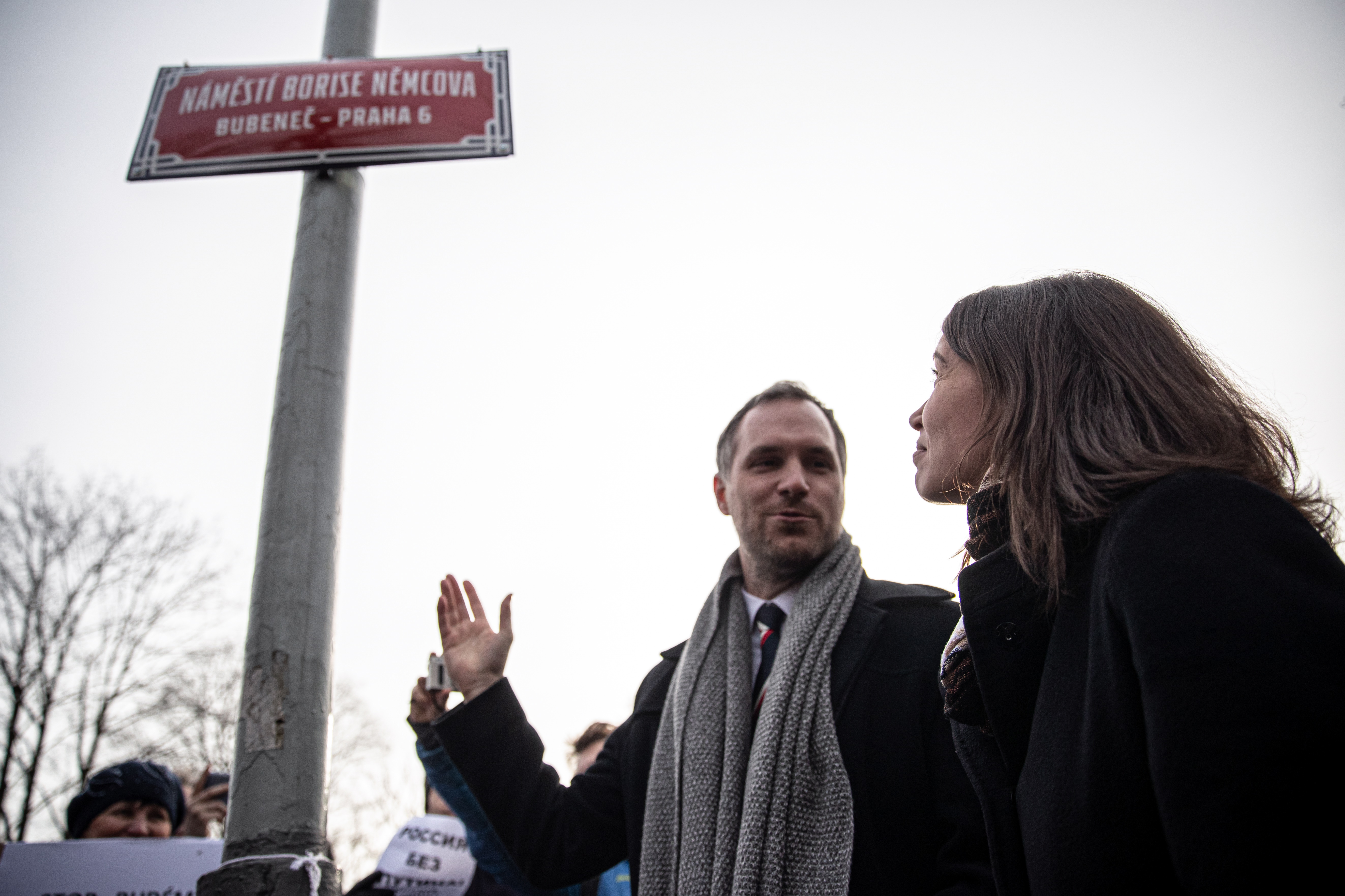 Переименовывать площадь пришли дочь убитого политика Жанна Немцова, мэр Праги Зденек Гржиб и Ондржей Коларж — староста Праги 6, района, где находится российское посольство.