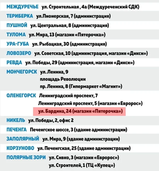 Оперштаб опубликовал список адресов, по которым можно получить одноразовые маски. Один из них, в Оленегорске, судя по карте, оказался похоронным бюро (в инфографике штаба значится супермаркет).