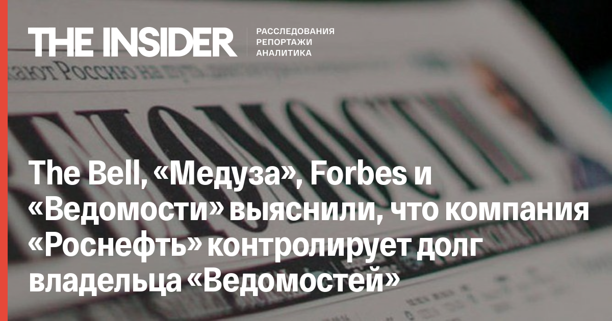 The Bell, «Медуза», Forbes и «Ведомости» выяснили, что компания «Роснефть» контролирует долг владельца «Ведомостей»