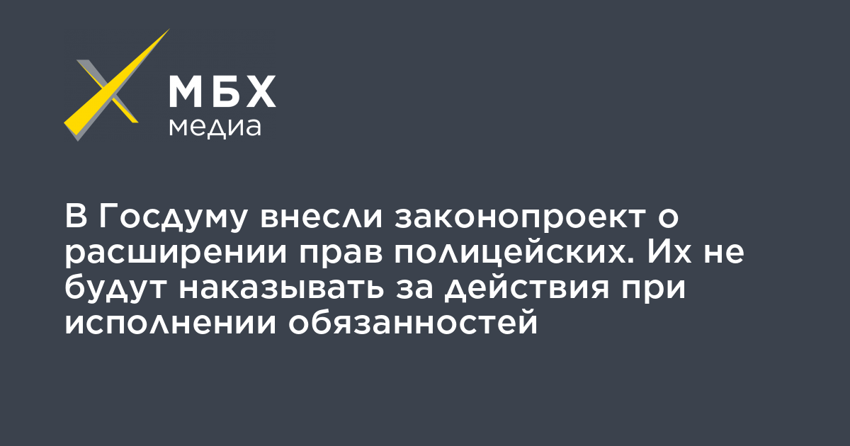 Авторы инициативы предложили дополнить закон положением о том, что «сотрудник полиции не подлежит преследованию за действия, совершенные при выполнении обязанностей, возложенных на полицию, и в связи с реализацией прав, предоставленных полиции».