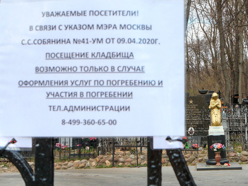 В соответствии с указом мэра Москвы Сергея Собянина, а также постановлением губернатора Московской области Андрея Воробьева, до окончания режима повышенной готовности (то есть до 31 мая) кладбища открыты только для погребения умерших. Просто посещать кладбища нельзя из-за пандемии коронавируса.