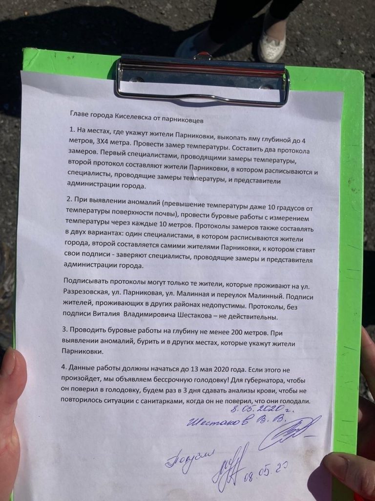 Во время встречи с жителями Парниковки мэр Киселевска говорил, что выступает «за то, чтобы бурить и проверять, все ли тут нормально или нет», однако активисты сомневаются, что их требования будут удовлетворены.