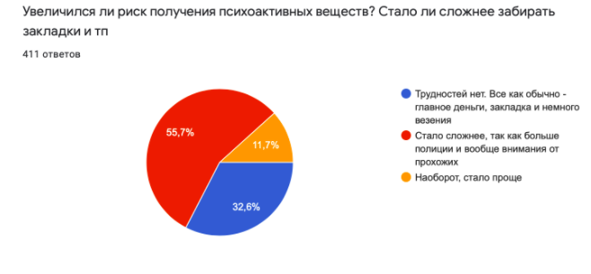 «Сижу дома, выхожу только за дозой т. к. никто не принесет». «Сижу дома, выхожу за сигаретами и закладками только рядом с домом, раз, два в неделю». «Торчу молчу». «Не хожу по впискам, устроился доставщиком, купил респиратор и антисептики, к родителям не езжу, с друзьями стараюсь не видеться. Распланировал домашнее времяпрепровождение, закупился шмалью под завязку, купил кетамина, ищу дмт, тупо домашний SPA салон». «Кофе, медитации, йога, уход в изучение новой информации и в творчество».«Выхожу раз-два в месяц. Шишки оптом дешевле, а так дома, т. к. работа удаленная». «Запасся заранее». «Беру чуть больше, чтоб реже ездить, но все равно езжу чаще нужного». «Повесился на кумарах лег в наркуху потом в дурку».