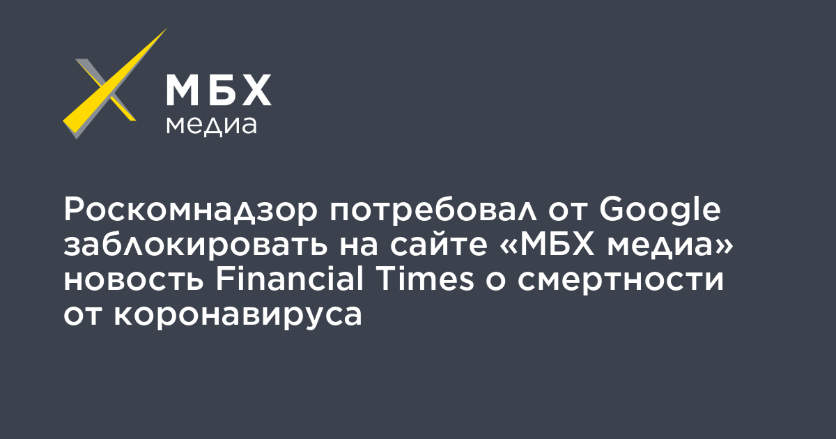 Роскомнадзор потребовал от Google заблокировать на сайте «МБХ медиа» новость Financial Times о смертности от коронавируса