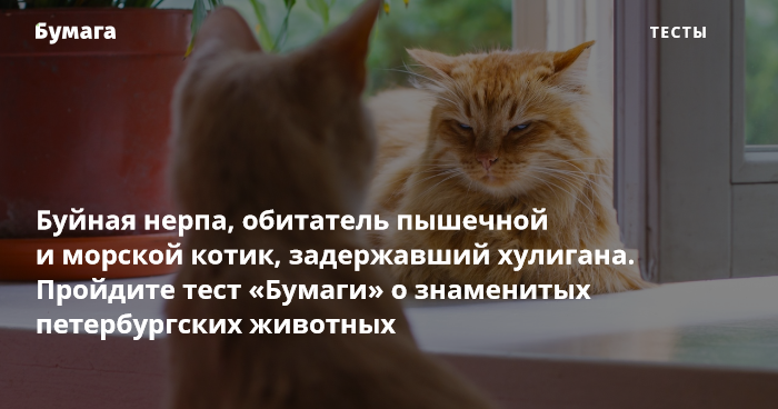Эрмитажные коты, тюлени из «Фонда друзей балтийской нерпы» и рысь из Ленинградского зоопарка — пройдите тест «Бумаги» и проверьте, как много вы знаете о животных, которые живут в петербургских учреждениях.