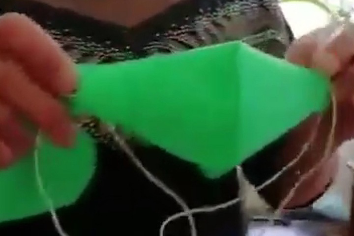 Маски сотрудники учреждения сшили сами. Одноразовые маски, которые выдают им «на 12 часов», выглядят так.