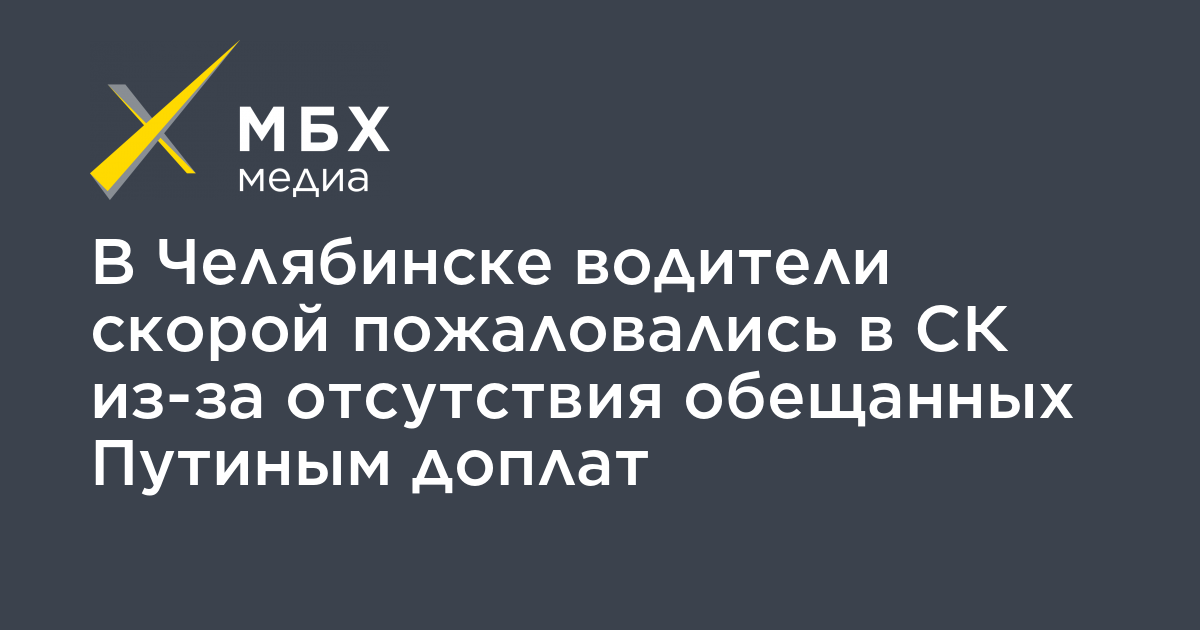 В Челябинске водители скорой помощи МАУ «Челябмедтранс» обратились в Следственный комитет из-за отказа руководства выплачивать в полном объеме доплаты в 25 тысяч рублей, которые были обещаны Владимиром Путиным. Об этом «МБХ медиа» сообщил координатор «Правозащиты Открытки» Алексей Прянишников, подготовивший жалобу.
