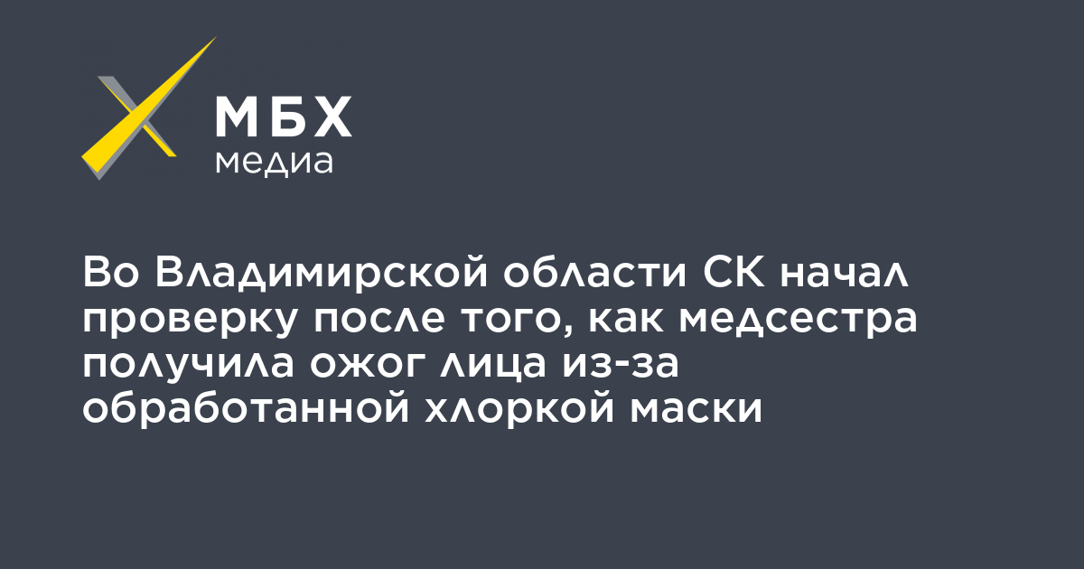 Во Владимирской области следственный отдел СК по городу Александров начал проверку после того, как медсестра районной больницы Ольга Овинникова получила химический ожог лица, воспользовавшись маской, выданной ей на работе. Об этом «МБХ медиа» сообщила юрист «Правозащиты Открытки» Анастасия Буракова, которая подавала жалобы в трудовую инспекцию и прокуратуру.