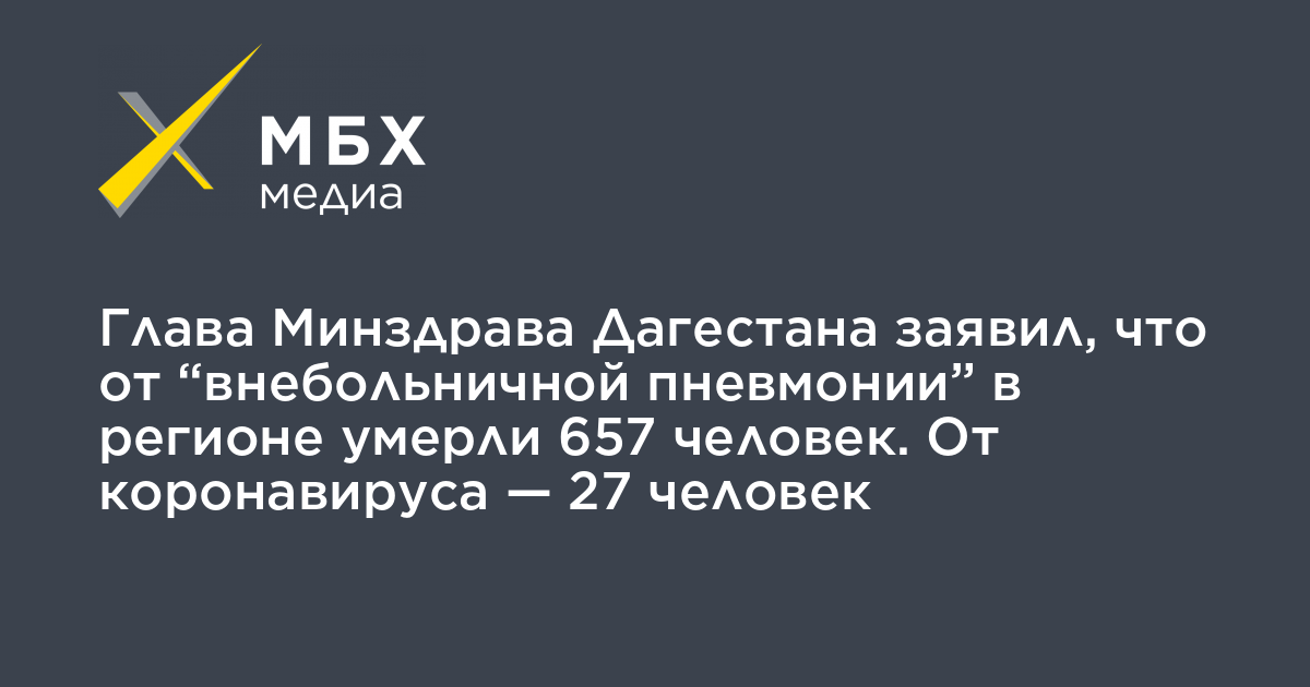 Глава Минздрава Дагестана заявил, что от «внебольничной пневмонии» в регионе умерли 657 человек. От коронавируса — 27 человек