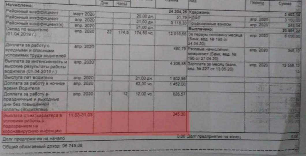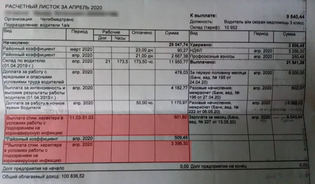 «Водители, которые перевозили пациентов с подтвержденным COVID-19 с 1 апреля, получат стимулирующую выплату в полном объеме. Расчет производится с даты перевозки пациента в месяце и до конца апреля, исходя из общей суммы. Пример: первая перевозка такого пациента осуществлена 1 апреля — водитель получит 25 тысяч рублей (максимальный размер выплаты). Перевозка первого пациента осуществлена 15 апреля — выплата составит 12 500 рублей за фактически отработанное время с момента первой перевозки», — говорил Андрей Бабенко порталу 74.ru.