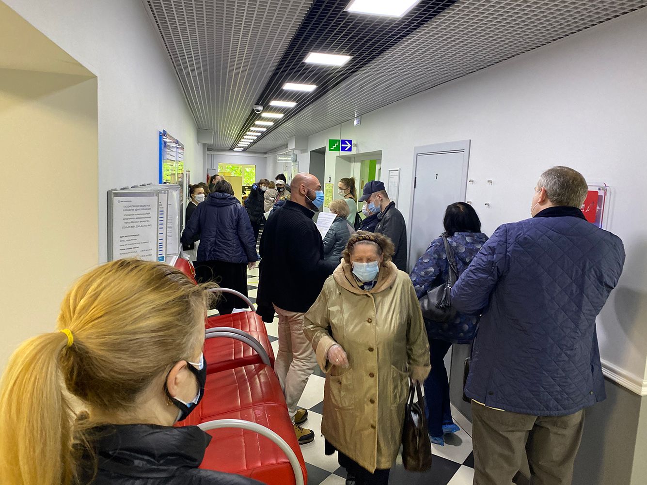 Через какое-то время пришедшие на скрининг сами покинули здание и выстроились в очередь на улице. Часть людей в очереди и только пришедших к зданию ушли домой, опасаясь, что ожидание растянется надолго. «К тому моменту к организации подключился и персонал поликлиники. В итоге поток выстроили в два кабинета в разных концах коридора и минут через 10-15 на каждого человека уходило по паре минут», — рассказывает фоторедактор «Медузы».