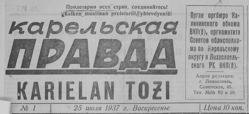 Еще с XVII века здесь жило много карел, более 140 тысяч. И 9 июля 1937 года Президиум ВЦИК принял решение о создании Карельского национального округа в составе Лихославльского, Новокарельского, Рамешковского, Максатихинского районов и вновь образованных из карельских сельсоветов Спировского и Козловского районов. Столицей этого молниеносного образования объявлен городок Лихославль, печатный орган — газета «Карельская правда».