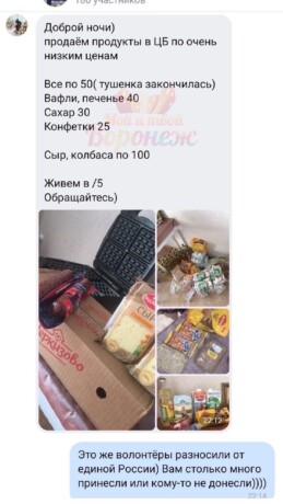 В Воронеже волонтёр «Единой России» продавала продукты для малоимущих семей в чате с соседями