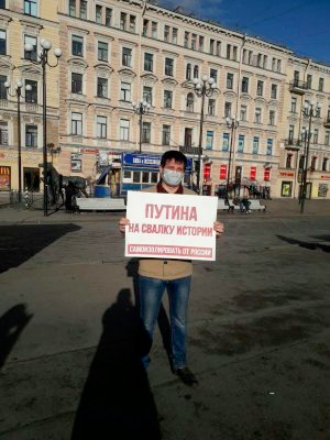 «Путина на свалку истории»: задержание и пять визитов оперативников за одиночный пикет