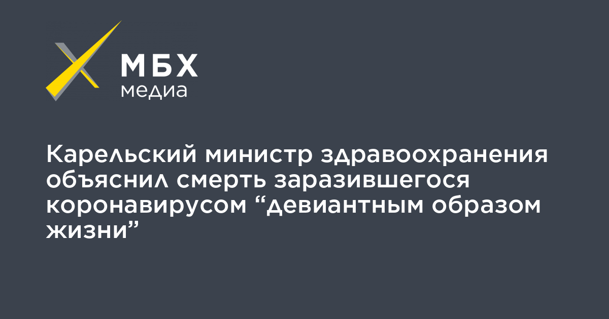 Министр здравоохранения Карелии Михаил Охлопков объяснил смерть пациента центра на базе госпиталя для ветеранов войн 1966 года рождения, у которого был коронавирус, патологиями «на фоне девиантного образа жизни». Об этом глава регионального Минздрава написал на своей странице во «ВКонтакте».