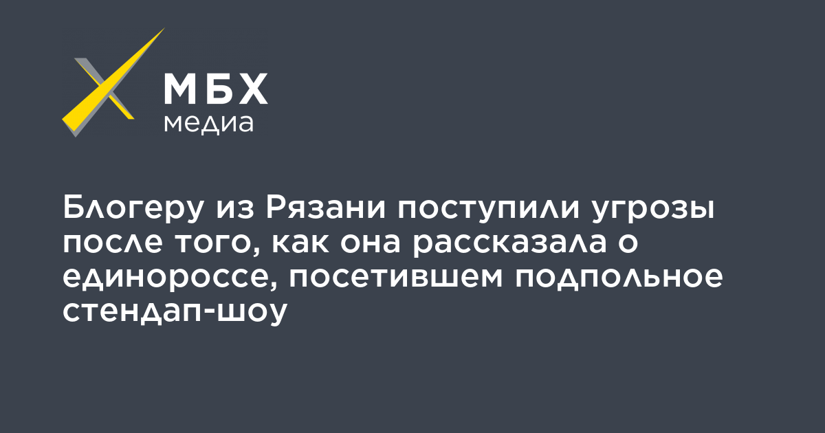 Блогеру из Рязани Марине Замятиной поступили угрозы после того, как она сообщила, что на подпольном стендап-концерте, разогнанном полицией, присутствовал член генсовета «Единой России». Об этом Замятина сообщила «МБХ медиа».