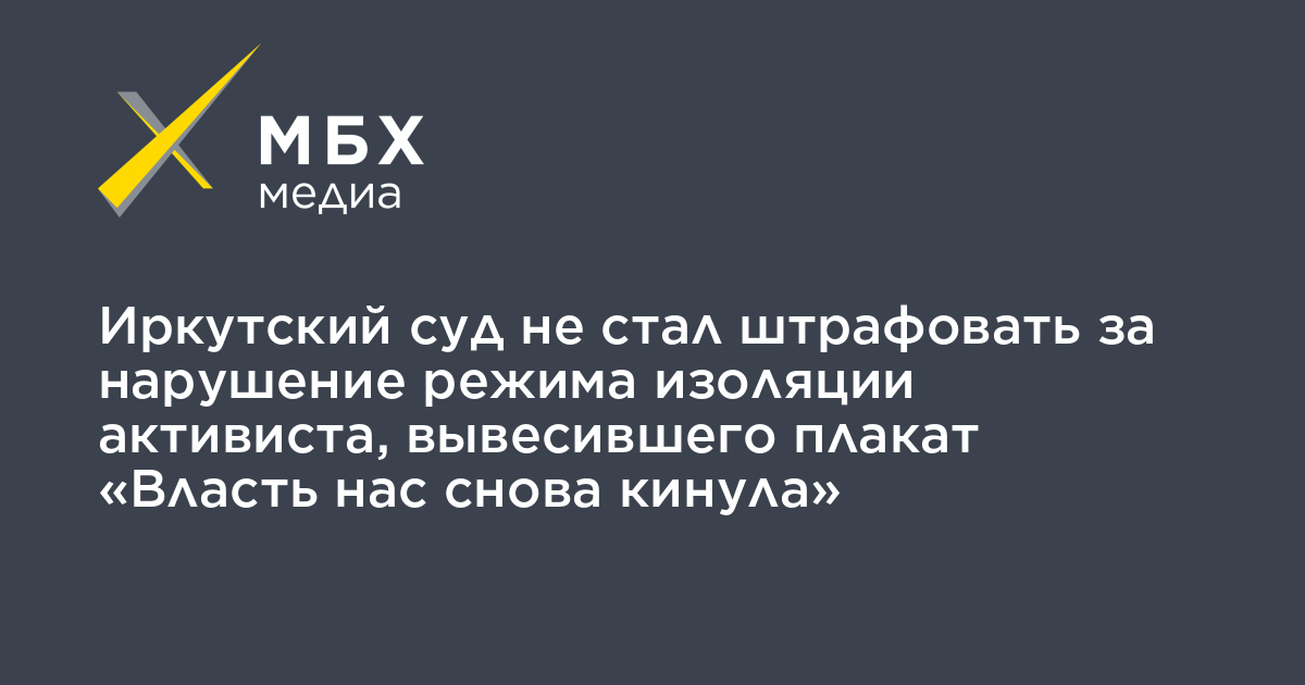 Иркутский суд не стал штрафовать за нарушение режима изоляции активиста, вывесившего плакат «Власть нас снова кинула»