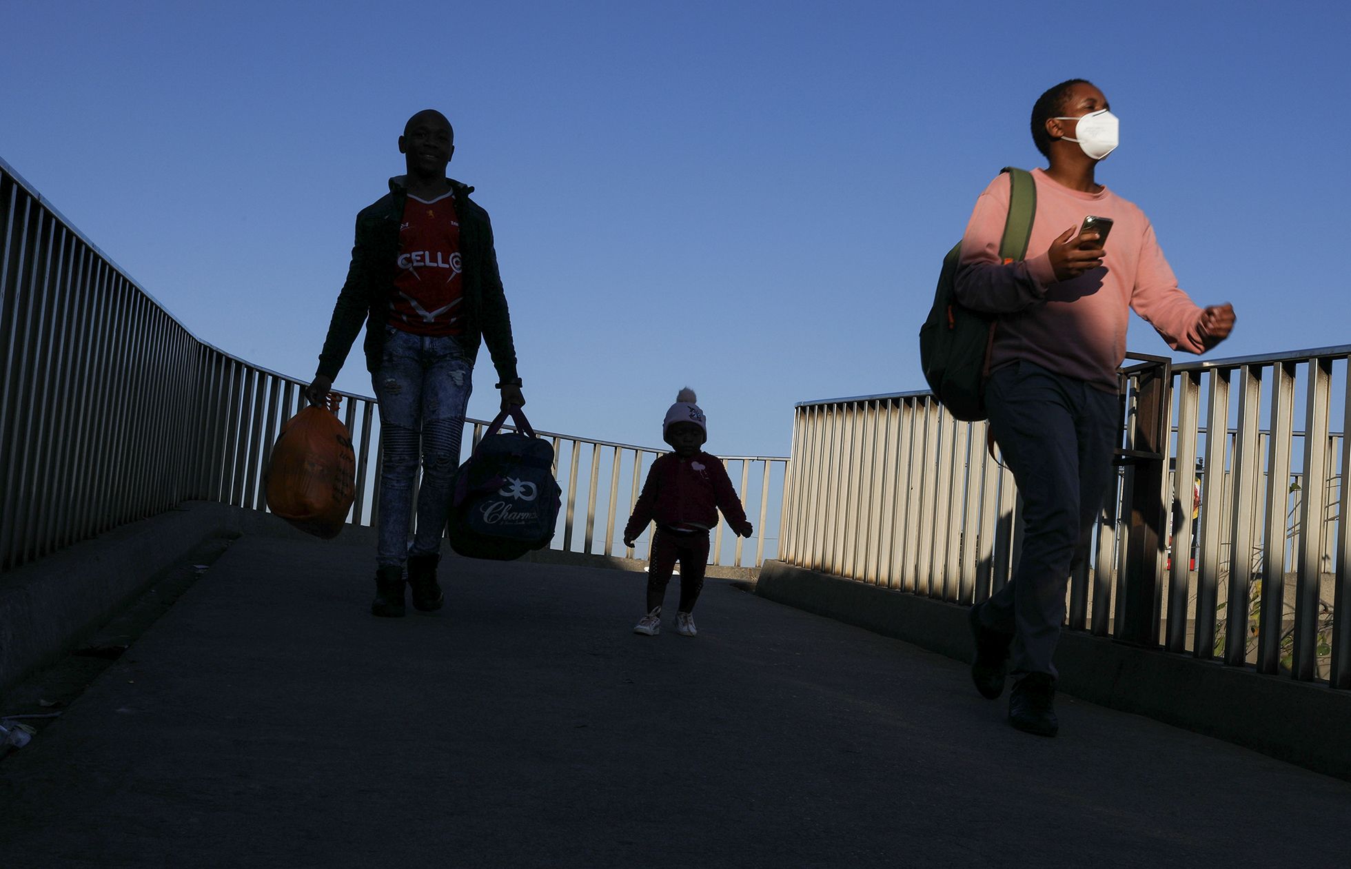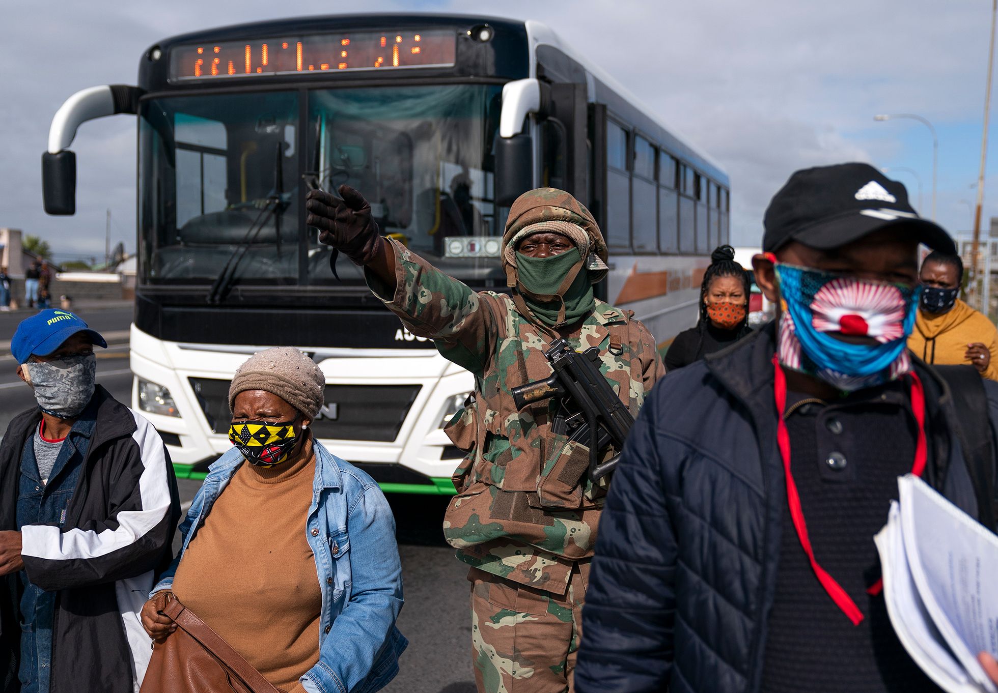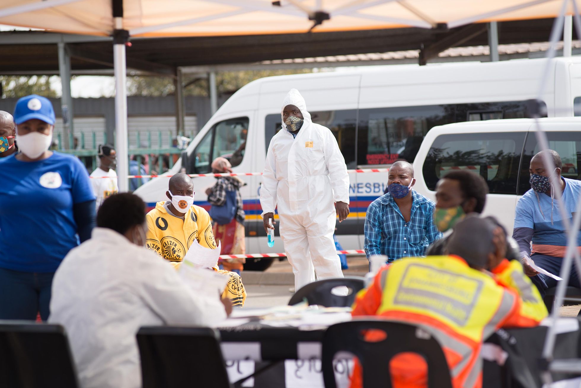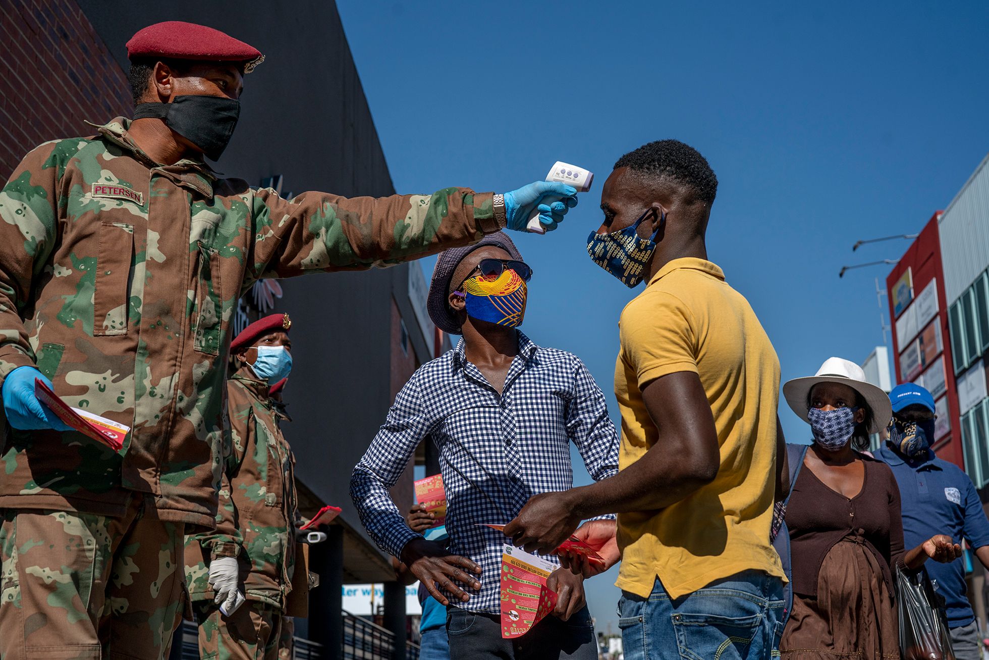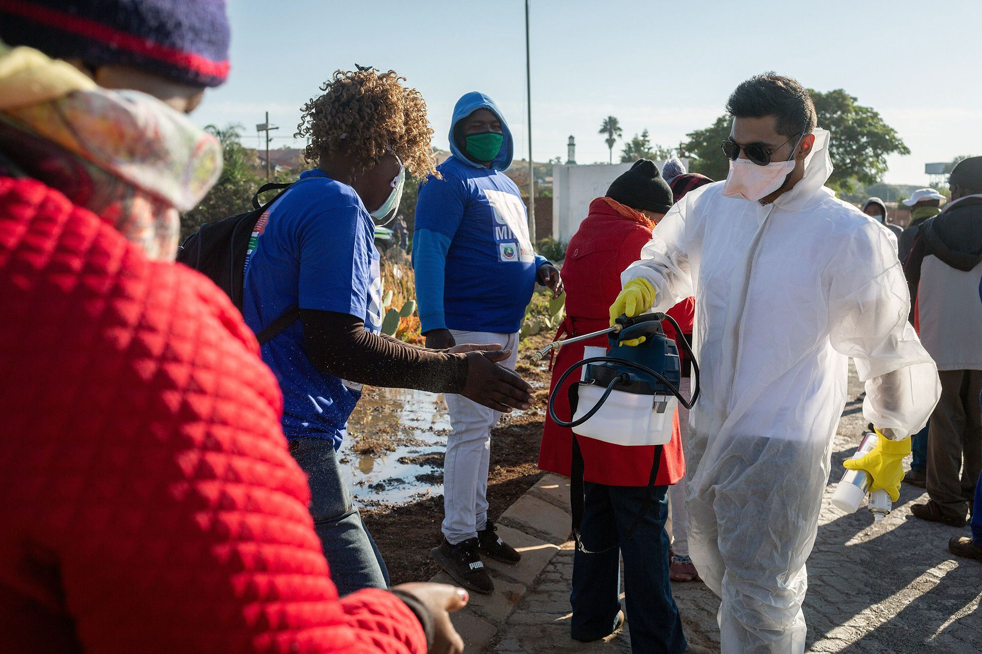 Waldo Swiegers / Bloomberg / Getty Images Житель Йоханнесбурга — самого крупного города ЮАР — проходит через санитарный коридор, 14 мая 2020 года