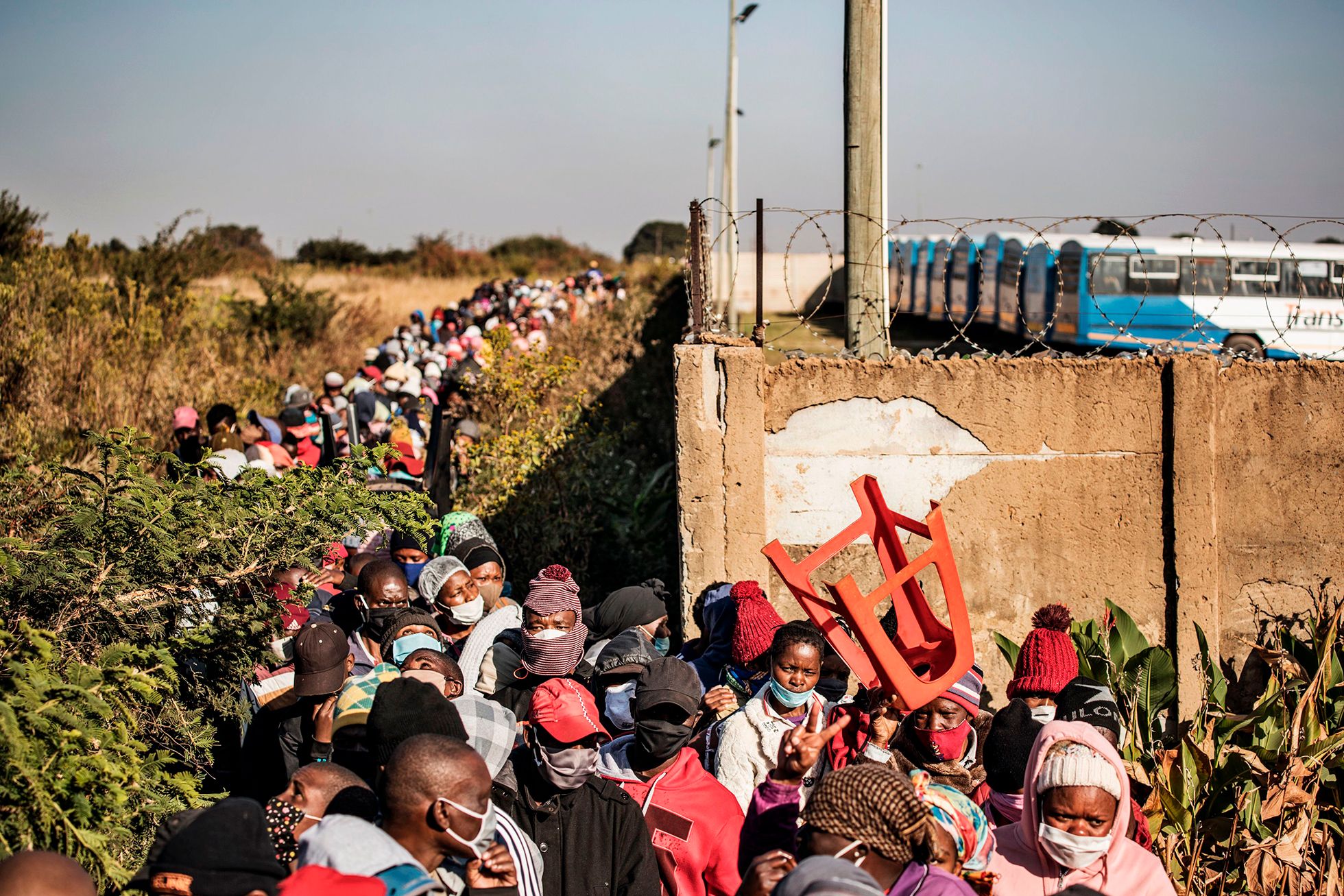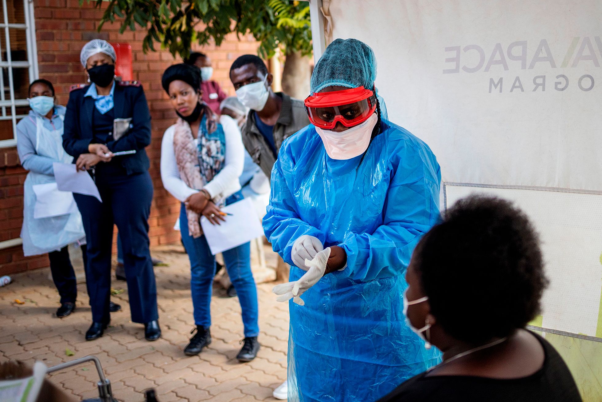 Marco Longari / AFP / Scanpix / LETA Очередь за бесплатными масками, мылом и санитайзерами в пригороде южноафриканского города Претория, 20 мая 2020 годаMarco Longari / AFP / Scanpix / LETA Женщина в очереди за масками и санитайзерами в пригороде Претории держит на голове стул, 20 мая 2020 годаYeshiel / Xinhua / Scanpix / LETA Жители Претории разбирают продукты, предоставленные благотворительными организациями, 20 мая 2020 годаYeshiel / Xinhua / Scanpix / LETA Волонтер в Претории дезинфицирует людям руки перед получением бесплатных продуктов, 20 мая 2020 годаThemba Hadebe / AP / Scanpix / LETA Очередь за бесплатной едой в пригороде Претории, 20 мая 2020 годаNic Bothma / EPA / Scanpix / LETA Южноафриканский военнослужащий на контрольно-пропускном пункте в Кейптауне, 13 мая 2020 годаAkintunde Akinleye / EPA / Scanpix / LETA Мужчины лежат на пакетах с водой, предназначенных для продажи на рынке нигерийского города Лагос, 20 мая 2020 годаSiphiwe Sibeko / Reutrers / Scanpix / LETA Прохожая в медицинской маске после ослабления карантина в Йоханнесбурге, 11 мая 2020 годаNardus Engelbrecht / AP / Scanpix / LETA Плакат с призывом носить маски в общественных местах на стене жилого дома в Кейптауне, 16 мая 2020 годаEr Lombard / Gallo Images / Getty Images Мобильная станция по тестированию на COVID-19 на стоянке маршрутных такси в южноафриканском городе Мидранд, 19 мая 2020 годаJerome Delay / AP / Scanpix / LETA Военнослужащий проверяет температуру людей на стоянке маршрутных такси в Йоханнесбурге, 20 мая 2020 годаJdidi Wassim / SOPA Images / LightRocket / Getty Images Больница для пациентов с коронавирусом в городе Арьяна на севере Туниса, 12 мая 2020 годаPatrick Meinhardt / Bloomberg / Getty Images Врач из столицы Кении Найроби кладет в герметичный пакет пробирку с материалом для анализа на COVID-19, 24 апреля 2020 годаJdidi Wassim / SOPA Images / LightRocket / Getty Images Доктор рассматривает рентгеновский снимок пациента в госпитале тунисского города Арьяна, 12 мая 2020 годаRodger Bosch / AFP / Scanpix / LETA Девочка моет руки в детском саду в пригороде Кейптауна, 14 мая 2020 годаDonwilson Odhiambo / Zuma Wire / Scanpix / LETA Дезинфекция улиц в Найроби, 9 мая 2020 годаKim Ludbrook / EPA / Scanpix / LETA Сотрудники благотворительной организации из Йоханнесбурга готовят еду для раздачи во время карантина, 19 мая 2020 годаMarco Longari / AFP / Scanpix / LETA Житель Йоханнесбурга ждет своей очереди на тестирование на коронавирус, 14 мая 2020 годаMichele Spatari / AFP / Scanpix / LETA Медсестра некоммерческой организации «Врачи без границ» готовится взять мазок на коронавирус в клинике Йоханнесбурга, 13 мая 2020 годаKim Ludbrook / EPA / Scanpix / LETA Жители Йоханнесбурга стоят в очереди за бесплатной едой во время карантина, 19 мая 2020 годаBrenton Geach / Gallo Images / Getty Images Раздача бесплатной еды в южноафриканском городе Парл, 13 мая 2020 годаMarco Longari / AFP / Scanpix / LETA Мигрант, живущий в Йоханнесбурге, несет домой ведро воды, 14 мая 2020 годаAlet Pretorius / Gallo Images / Getty Images Мужчины играют в бильярд на стоянке маршрутных такси в Претории, 12 мая 2020 годаMarco Longari / AFP / Scanpix / LETA Дети держат дистанцию в очереди за бесплатной едой в Йоханнесбурге, 19 мая 2020 года