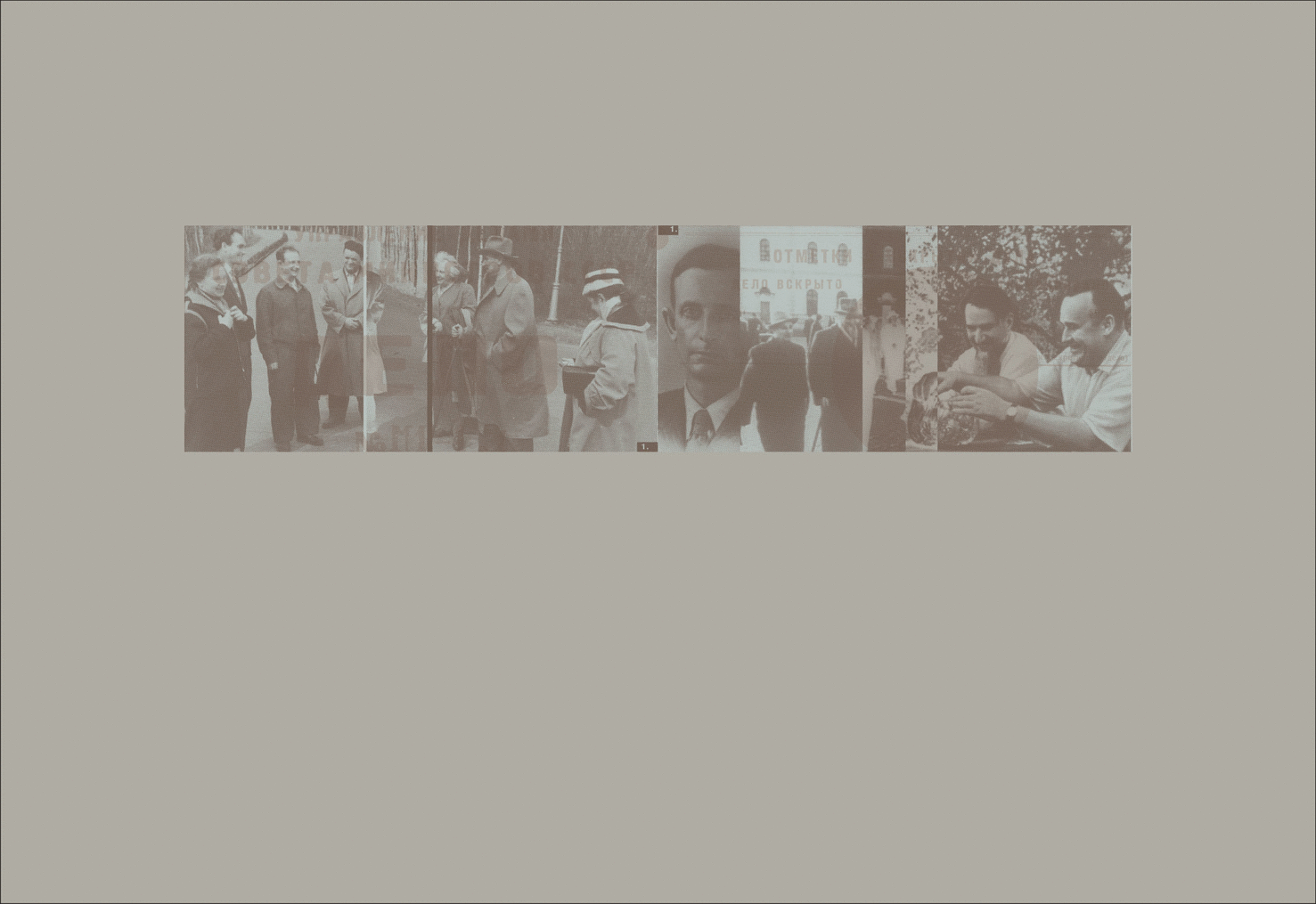 Фотомонтажи для вкладышей к книге художника «Преображение-Икс». На архивных фото — участники советского атомного проекта, в том числе Сахаров, Харитон, Курчатов, известные и безвестные сотрудники многих секретных лабораторий, сканированные грифы секретности, шапки приказов, номера дел