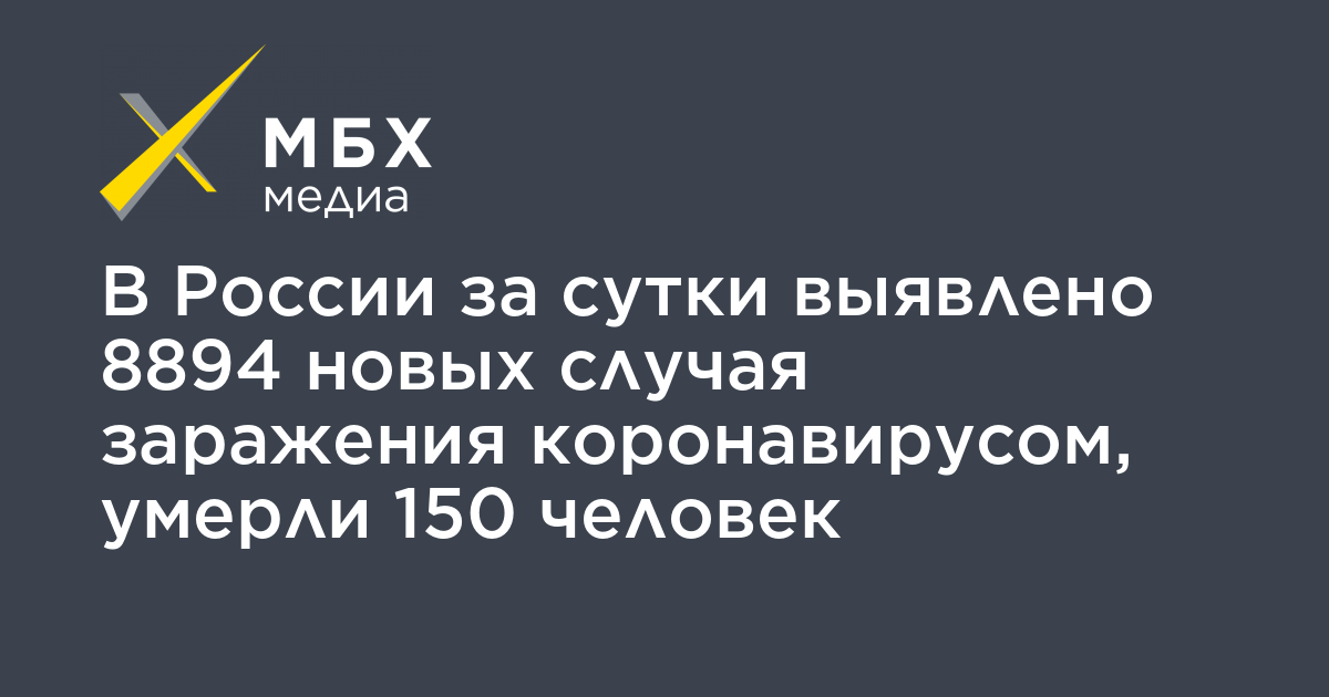 В России за сутки выявлено 8894 новых случая заражения коронавирусом, умерли 150 человек