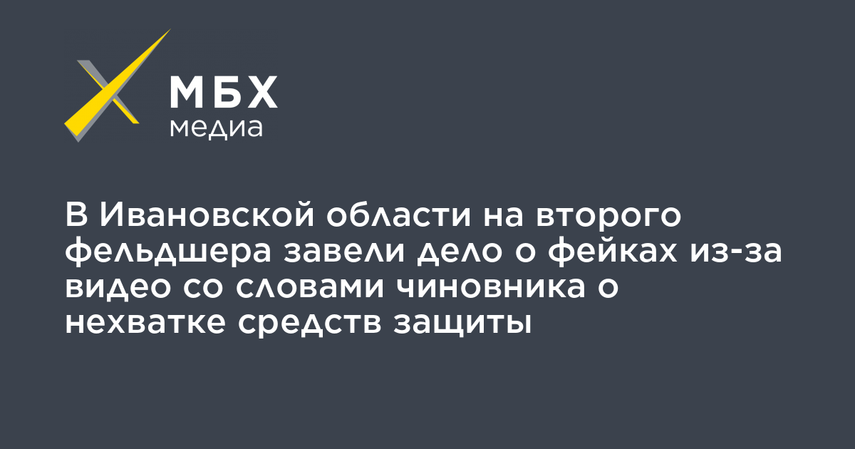 В Ивановской области на второго фельдшера завели дело о фейках из-за видео со словами чиновника о нехватке средств защиты