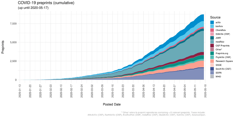 Самая быстрорастущая тема — социально-экономические контексты и последствия эпидемии. Препринты в этой теме только начинают появляться.