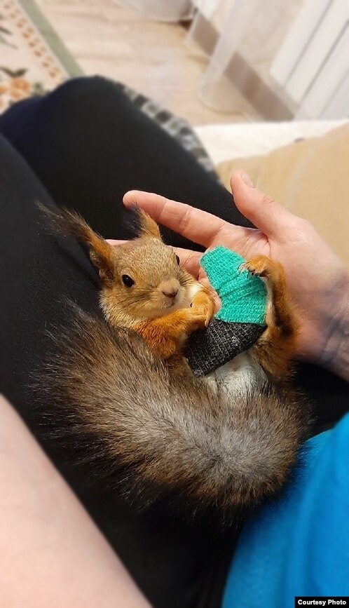 В петрозаводской ветеринарной клинике "Нос по Вет.ru" бельчонку Васе наложили гипс на лапку, говорится в паблике клиники.