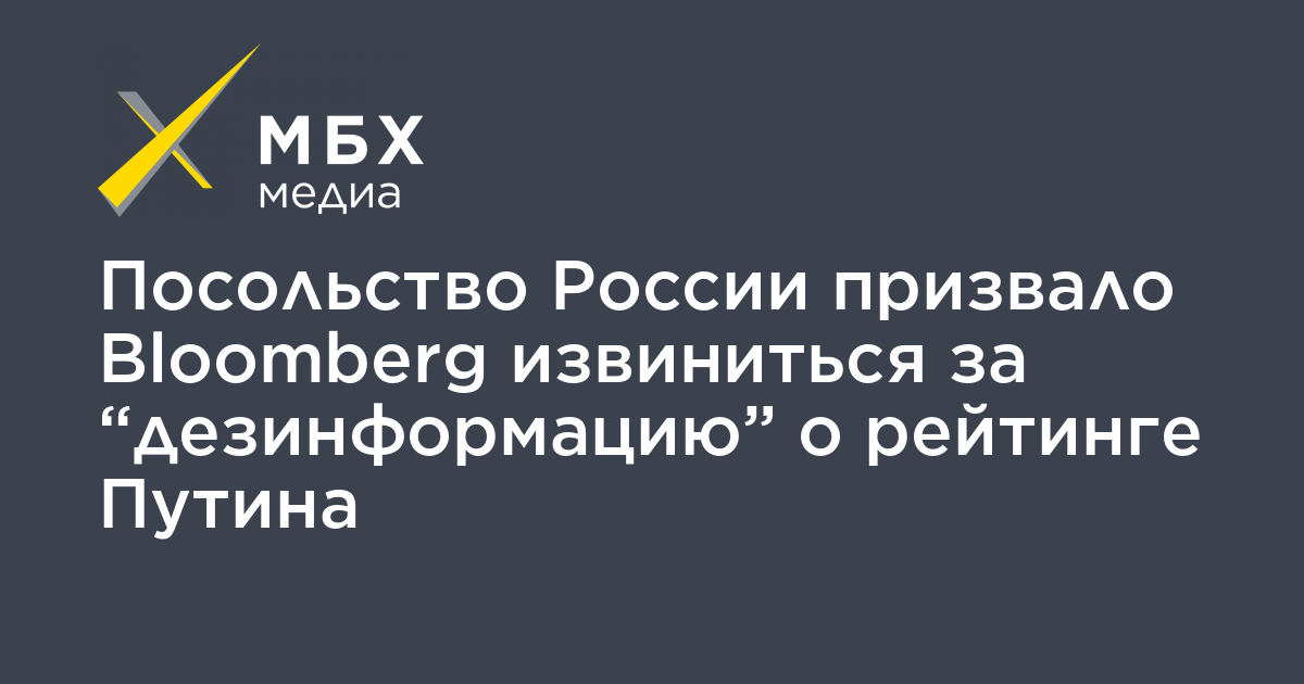 Посольство России призвало Bloomberg извиниться за «дезинформацию» о рейтинге Путина