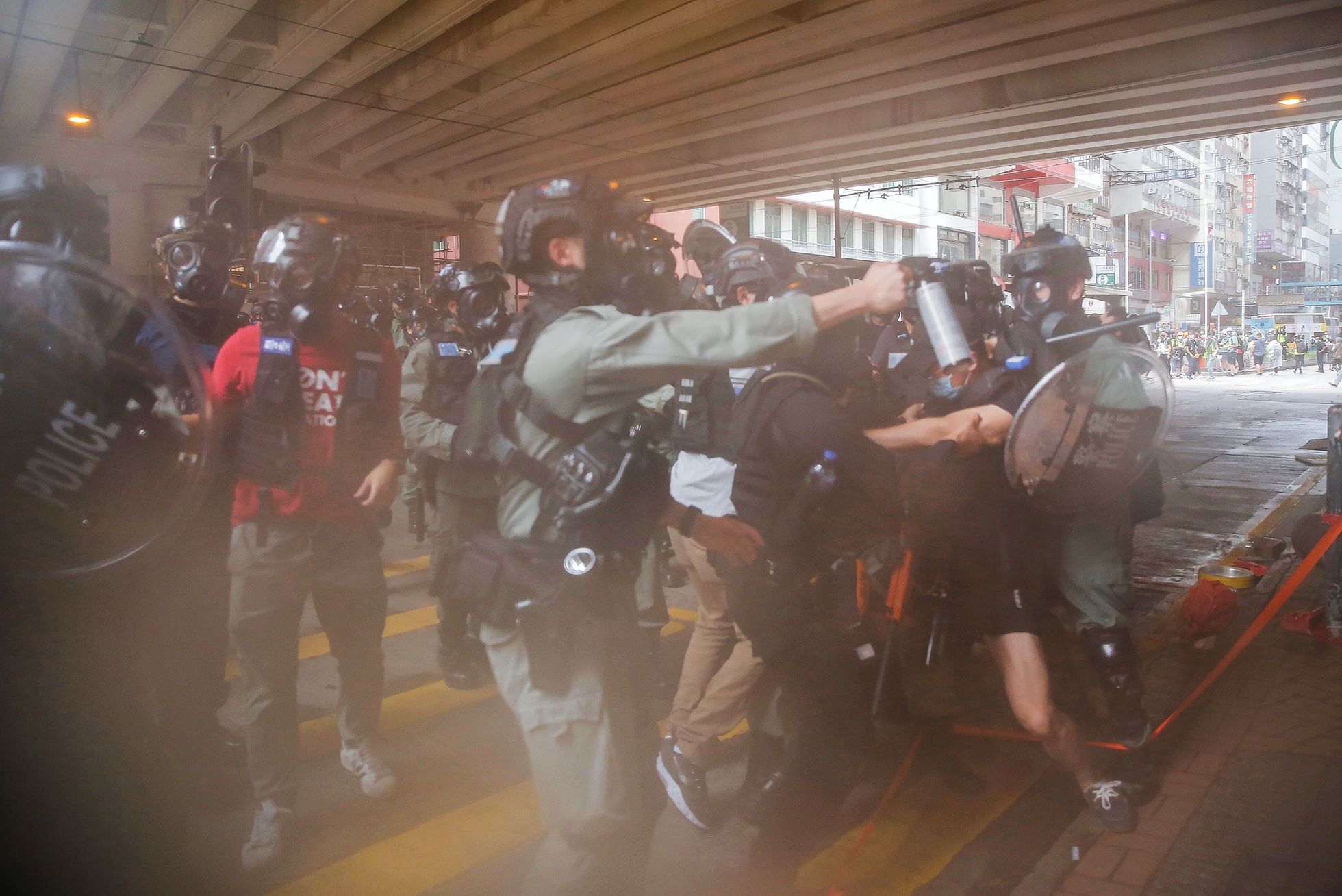 Kin Cheung / AP / Scanpix / LETA В Гонконге 24 мая прошли многотысячные акции против принятия законопроекта, расширяющего полномочия китайских силовых служб на территории автономии. Так как в Гонконге действуют ограничительные меры из-за коронавируса, власти отказались санкционировать акции. В итоге протестующих с помощью слезоточивого газа и водяных пушек разгоняла полиция, более ста человек были задержаны.