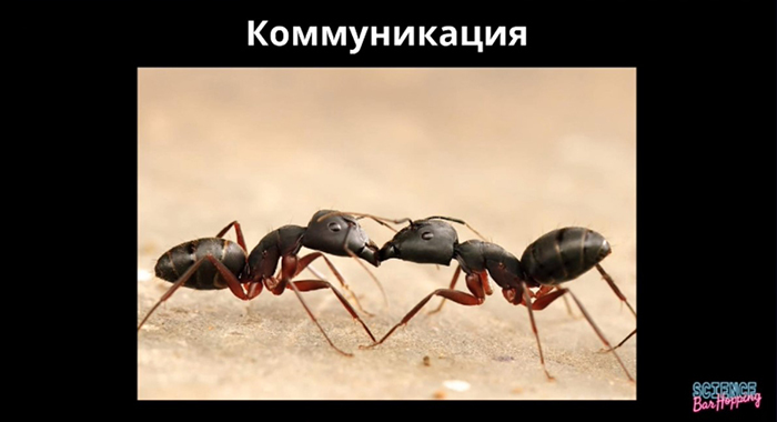 — Муравьи как сообщество ведут себя крайне осмысленно, при том что никаких инструкций они не получают. Их способ решать текущие задачи — действия в малых группах. По сути, они ведут себя так, как вели наши предки, когда мы жили компаниями по два-три-четыре десятка людей. Это были наши малые группы с помощью которых мы решали все наши тактические задачи. Муравьи делают то же самое. Они объединяются в маленькие группы, которые объединяются в группы побольше и так далее до нескольких миллионов особей, которые составляют, например муравейник.