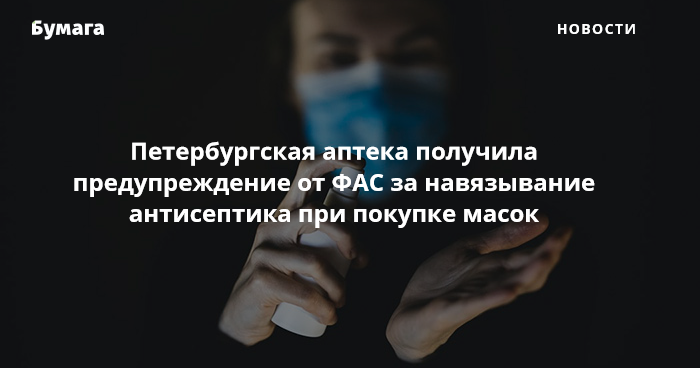 Предупреждение выдали после жалобы петербурженки — она рассказала, что маски в аптеке продают «только в нагрузку с антибактериальным спреем». Набор из пяти масок и антисептика стоит 576 рублей.