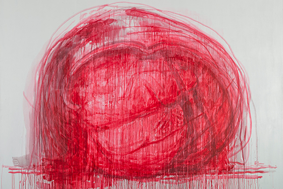 Именно «Красная серия», отмечают в пресс-службе, ознаменовала собой смену творческого курса Чжана Хуаня и его возвращение к технике живописи. Первые работы серии объединены названием «Реинкарнация»: для них характерны активное использование красного цвета на стерильно белом фоне, общее эмоциональное напряжение и образ «красного дождя», переходящий из работы в работу.