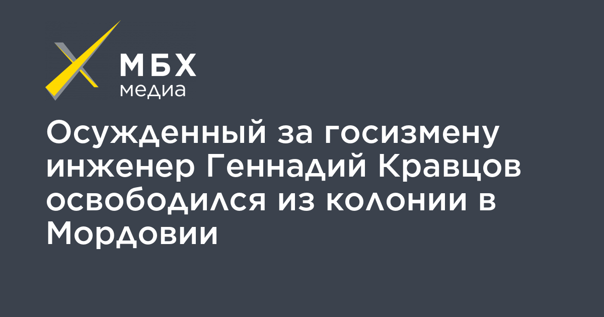 Радиоинженер Геннадий Кравцов, осужденный на шесть лет по делу о госизмене (статья 275 УК), освободился из мордовской колонии. Об этом он сообщил обозревателю «МБХ медиа» Зое Световой.