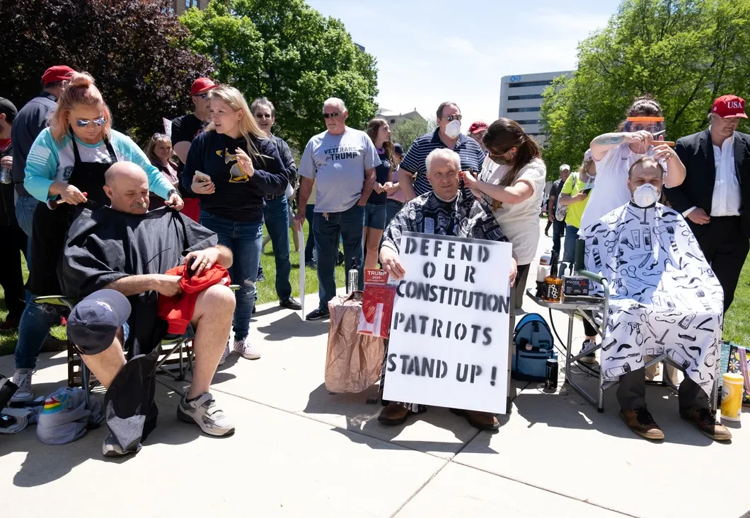 В столице Мичигана Лансинге вооруженные протестующие трижды пытались ворваться в здание заксобрания штата. Были протесты и в Висконсине, закончившиеся отменой указа о самоизоляции 14 мая, после чего освобожденные страдальцы заполнили местные бары.