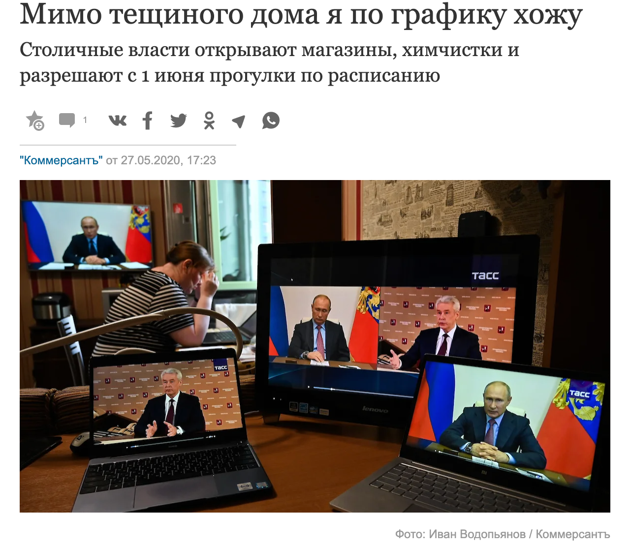 По информации «Коммерсанта», указ о порядке прогулок может быть опубликован 28 мая. Но это не главное. Главное — заголовок «Коммерсанта».