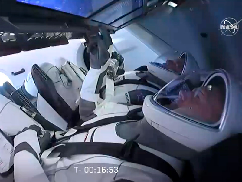 К этому моменту астронавты NASA Роберт (Боб) Бенкен и Дуглас (Даг) Хёрли уже несколько часов находились на борту корабля. Наблюдать за запуском Crew Dragon собирался прибывший на космодром президент США Дональд Трамп, а среди провожавших Бенкена и Хёрли на корабль был вице-президент США Майк Пенс с супругой.