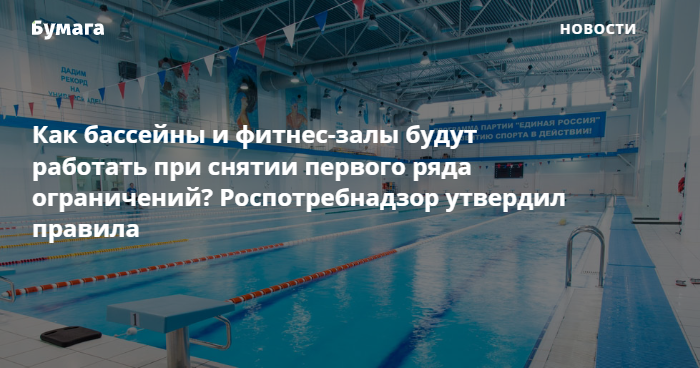Роспотребнадзор опубликовал на сайте рекомендации по профилактике коронавируса в бассейнах и фитнес-залах. На основании этого документа регионы будут создавать законы о снятии ограничений со спортивных учреждений.